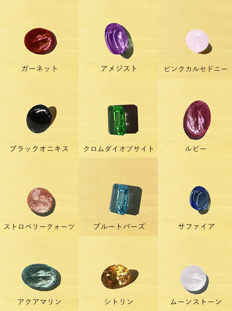 またアイテムによっては、エメラルドを始めとした12種類の誕生石から選べるものもあります。